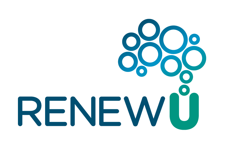 The RenewU website displayed on a laptop, showcasing the home page.