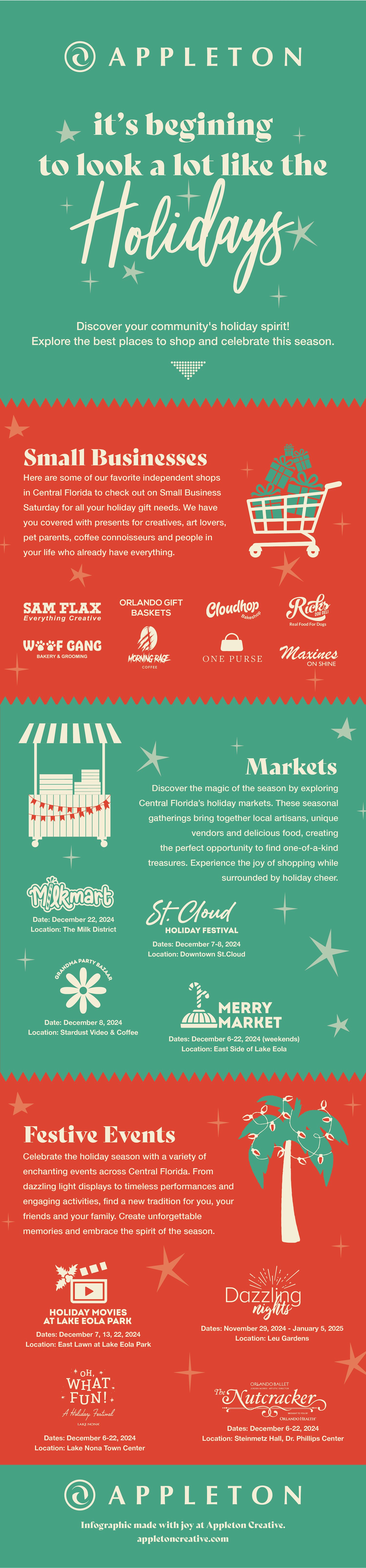 Embark on a journey into Central Florida’s magic with this year’s festive infographic. Join us in supporting our community by finding the best things to do for the holidays in Orlando below.